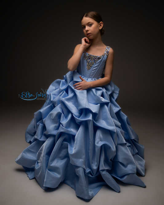 Blue couture evening gown, Pageant ball gown, Birthday Girl Dress